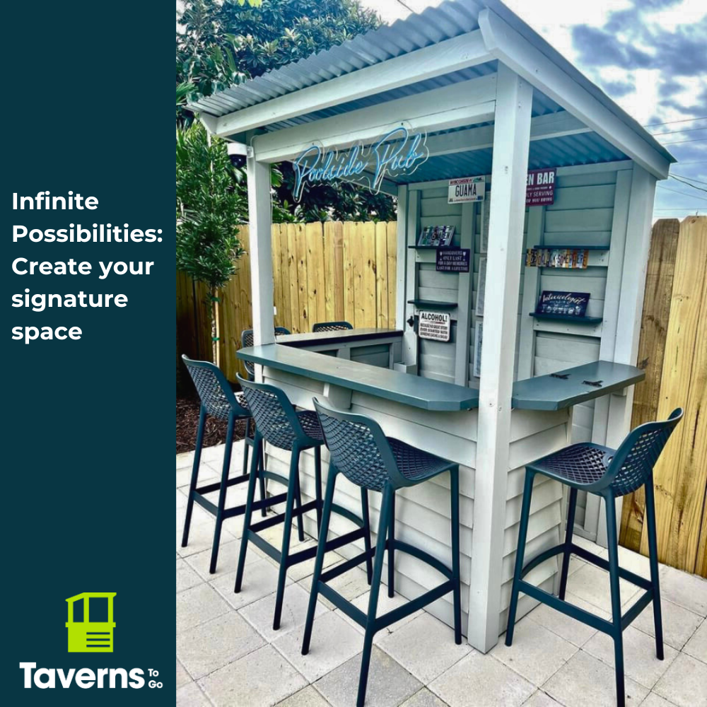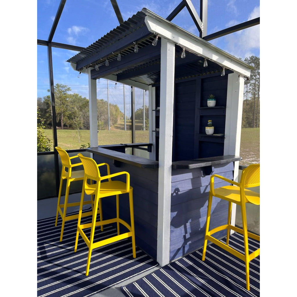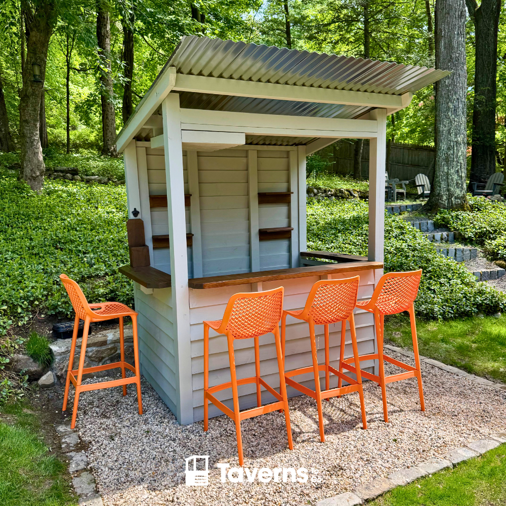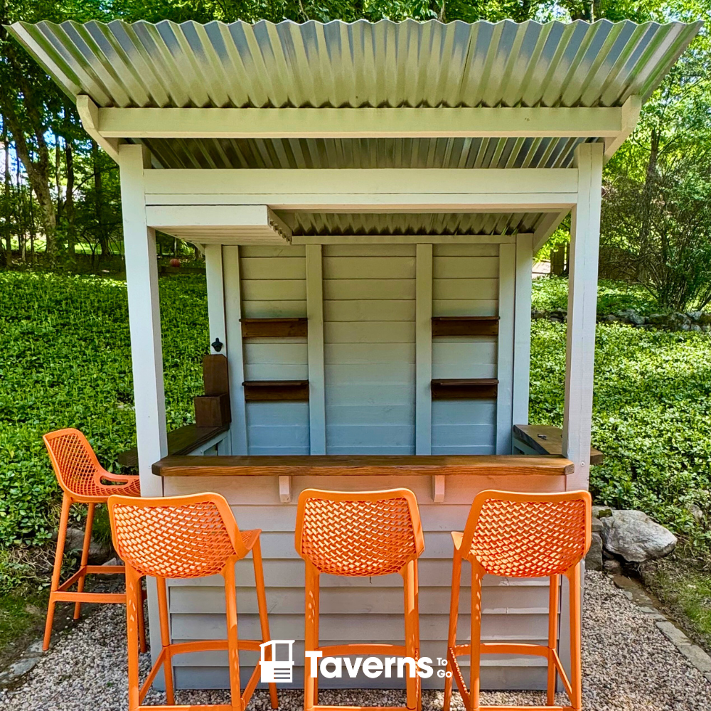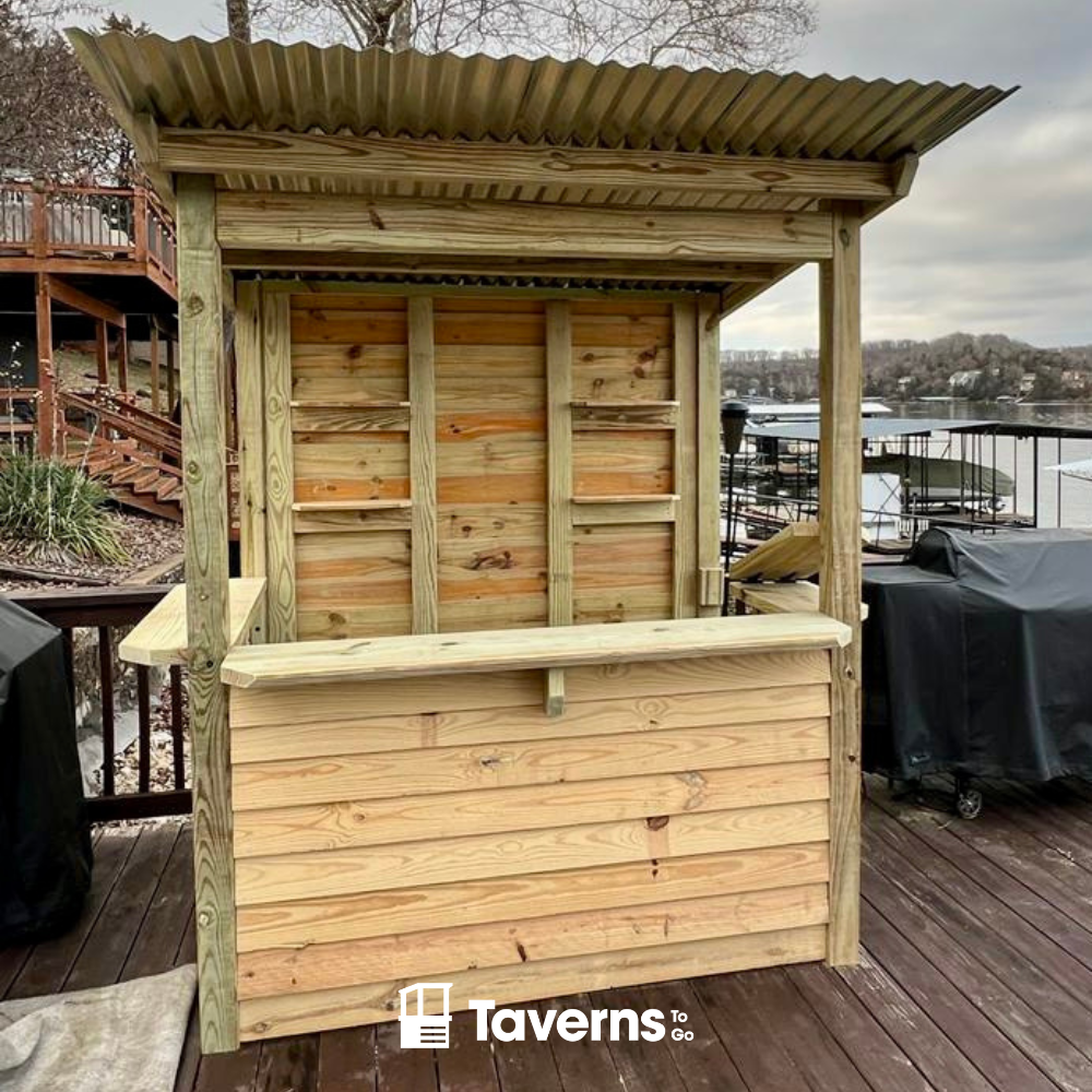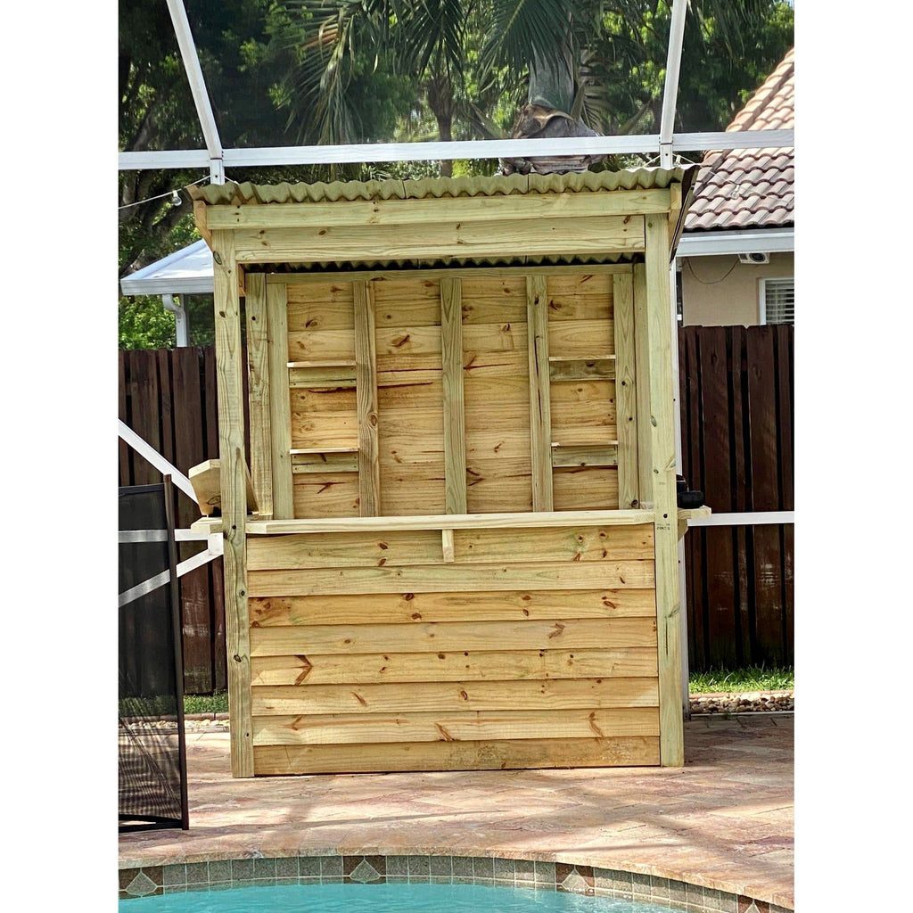 Meet the Temple Bar - our smallest but very impressive model! Measuring 6'-0" wide x 4'-0" deep, there is plenty of space to stock it with your favorite beverages using cooler boxes, beer fridges or splash out with your own kegerator (all sold separately). The bar counter space will comfortably seat 4+ people. The structures are built with the best of quality, pressure treated lumber enabling outdoor use year round. Customers can easily stain their finished products to achieve the best look for their backyard (as shown in the photos). The roof structure is a hard wearing galvanized corrugated steel.