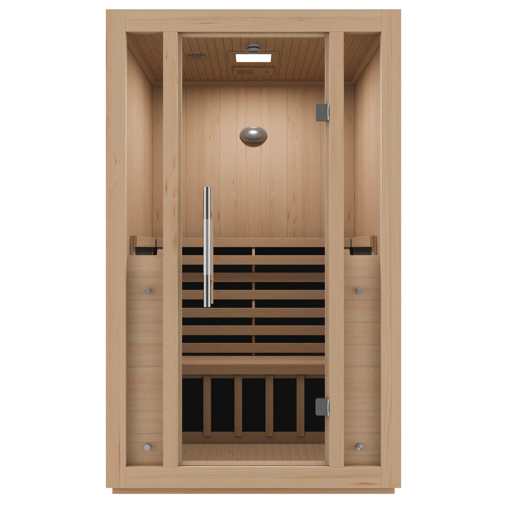 COMFORTING DRY HEAT FROM LOW EMF, CARBON FAR INFRARED HEATING PANEL & REDLIGHT HEATING TUBE — our sauna uses the latest technology to generate a comfortable dry heat that soothes and relaxes, while relieving fatigue and promoting full-body well-being