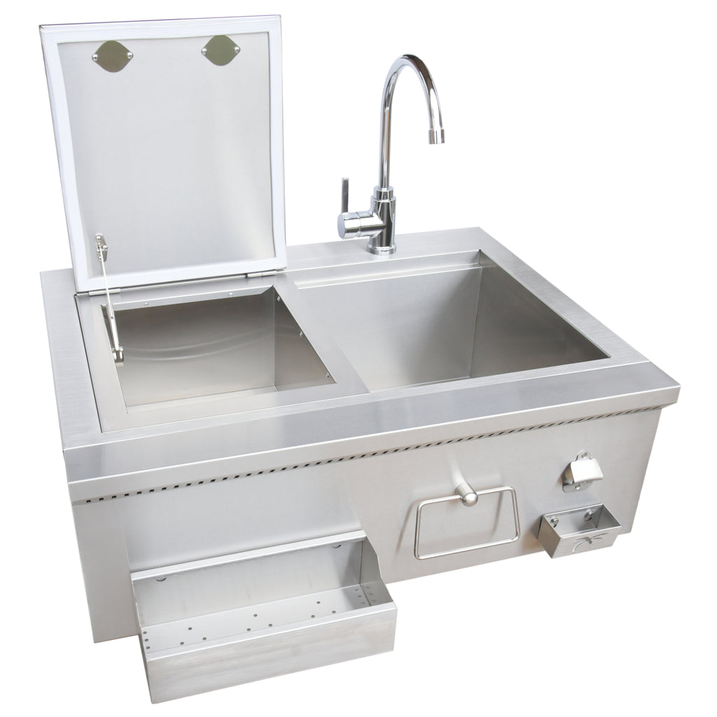 Upgrade your outdoor kitchen with the Kokomo Grills 30" Built-In Bartender Cocktail Station, the ultimate stainless steel bar sink setup for entertaining. This all-in-one outdoor cocktail and prep station includes a farmhouse sink, drop-in ice chest, and drop-in sink, giving you flexibility for every occasion. Perfect for outdoor bars, BBQ islands, and luxury patios, it’s built for durability, style, and functionality—offering everything you need to mix drinks, prep food, and serve guests with ease.