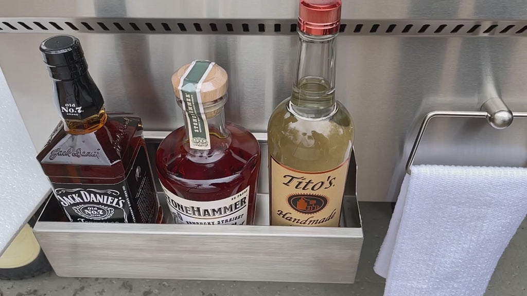 Features a towel bar, speed rail, and bottle opener for added functionality.