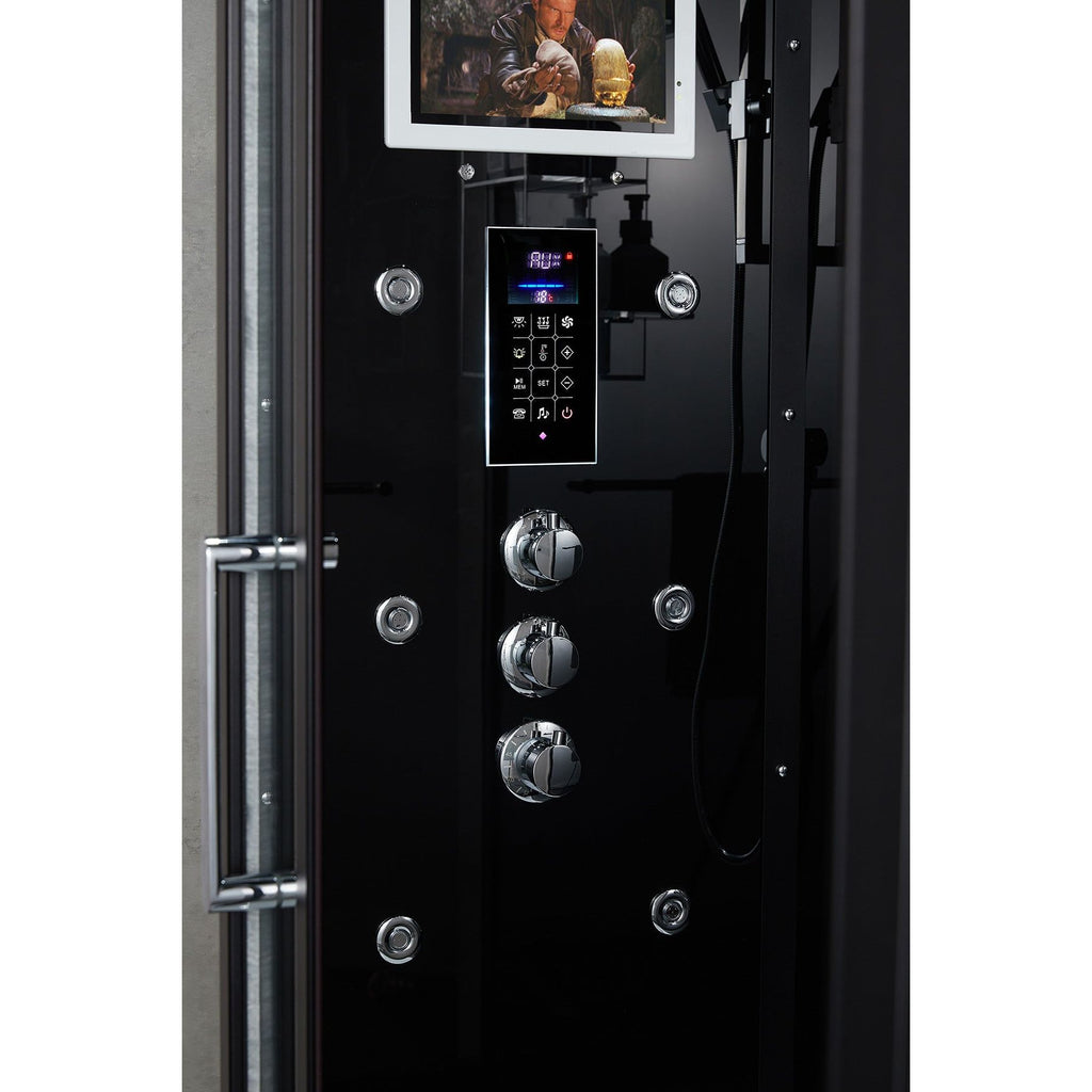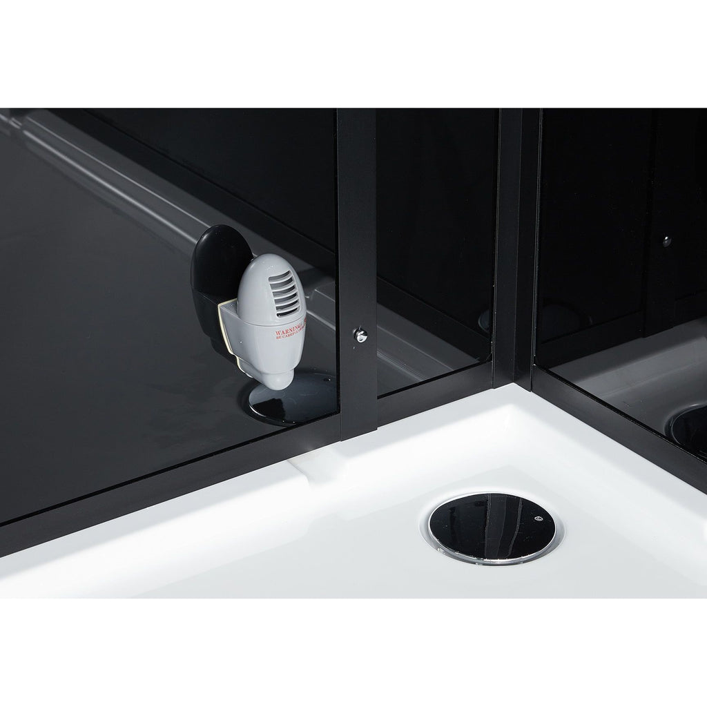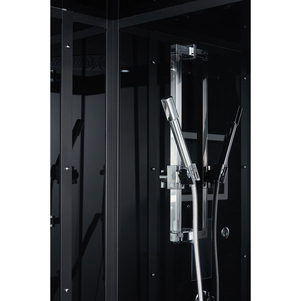The Platinum Anzio Steam Shower (Left Orientation) is a stunning addition to any bathroom. Featuring sleek black or white rear panels and clear tempered glass front, it combines modern aesthetics with a full suite of spa-inspired amenities. Compact yet luxurious, the Anzio is designed for freestanding corner installation and accommodates up to two users comfortably.