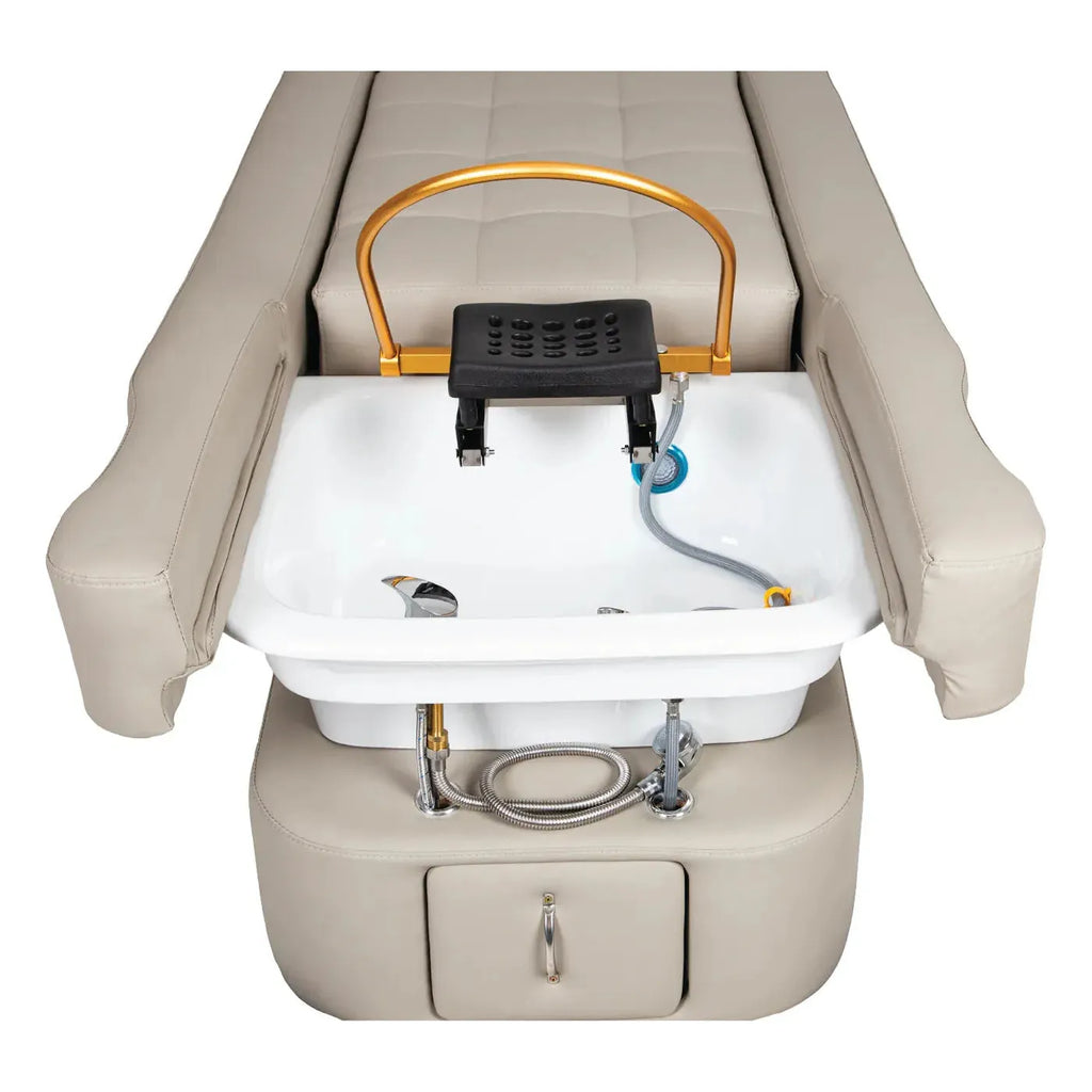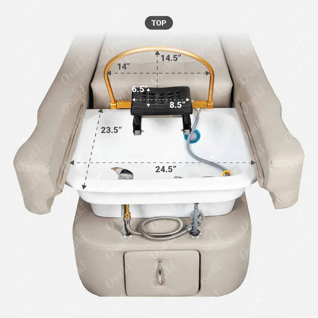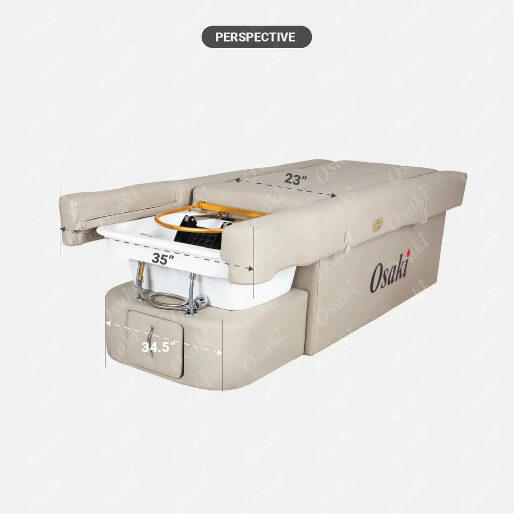 The Osaki Nika Shampoo Bed is a spacious, versatile spa station designed to deliver comfort and convenience for a variety of treatments. As the largest model in its category, it offers ample room for clients and practitioners to perform services like shampooing, head spa, and pedicures with ease.