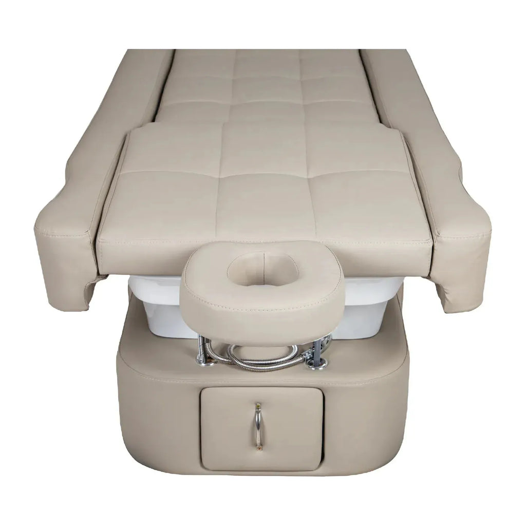 For added versatility, the unit easily converts into a flat bed by covering the head bowl, expanding its use to spa and aesthetic treatments. It’s also compatible with separate steamers to enhance hair care services. Note that this model does not include a massage feature.