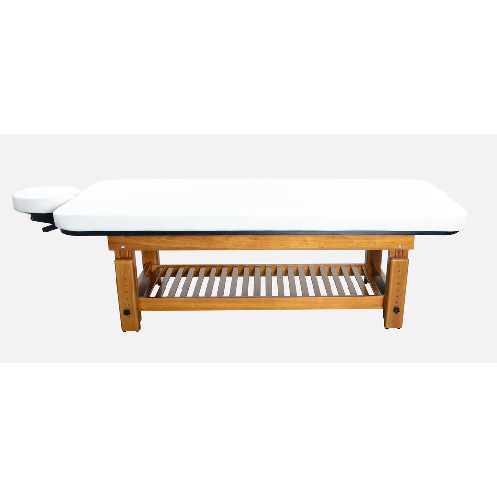 With an impressive 1,000 lb weight capacity and water-resistant construction, Solterra is ideal for bringing high-quality massage services outdoors without compromising stability or comfort. An optional slatted teak lower shelf adds convenient storage and visual balance.