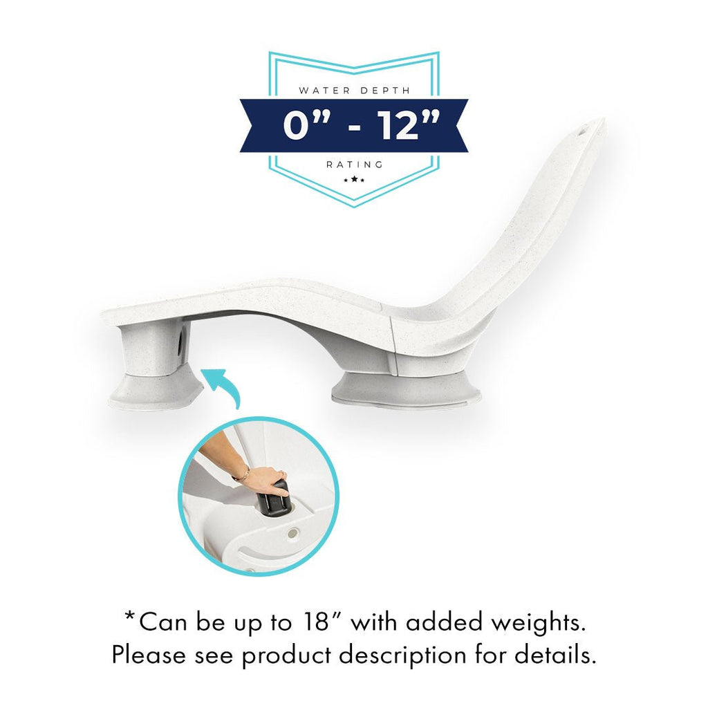 Designed for deeper sun shelves, allowing Laylo to remain comfortably seated in water depths up to 22 inches when paired with optional weights.
