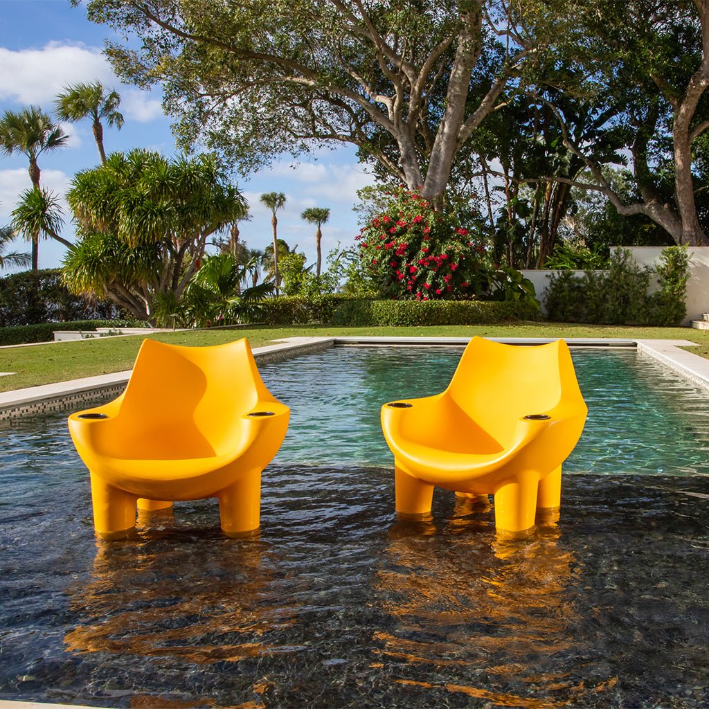 Comfortable, durable, and visually striking, the Tenjam Mibster Chair is a favorite among homeowners seeking laid-back poolside comfort with bold personality. Featuring a retro-inspired silhouette and low-profile design, the Mibster is ideal for sun shelves and shallow ledges—allowing you to relax while keeping your feet comfortably in the water.