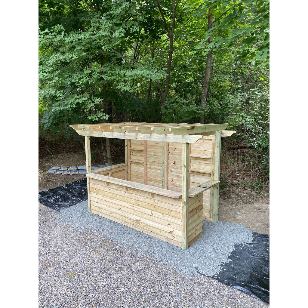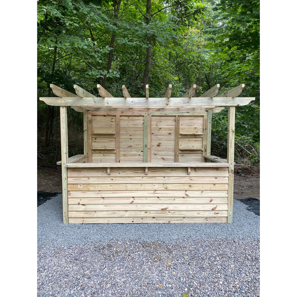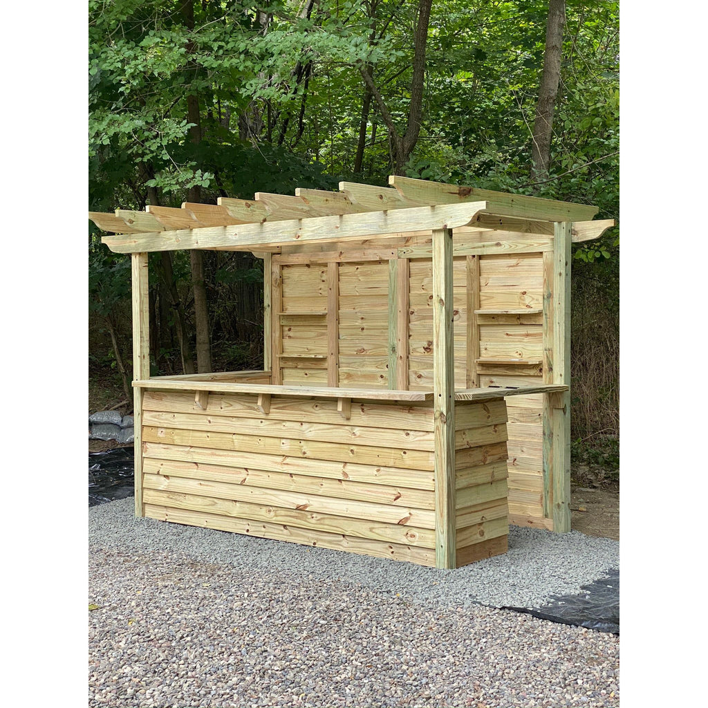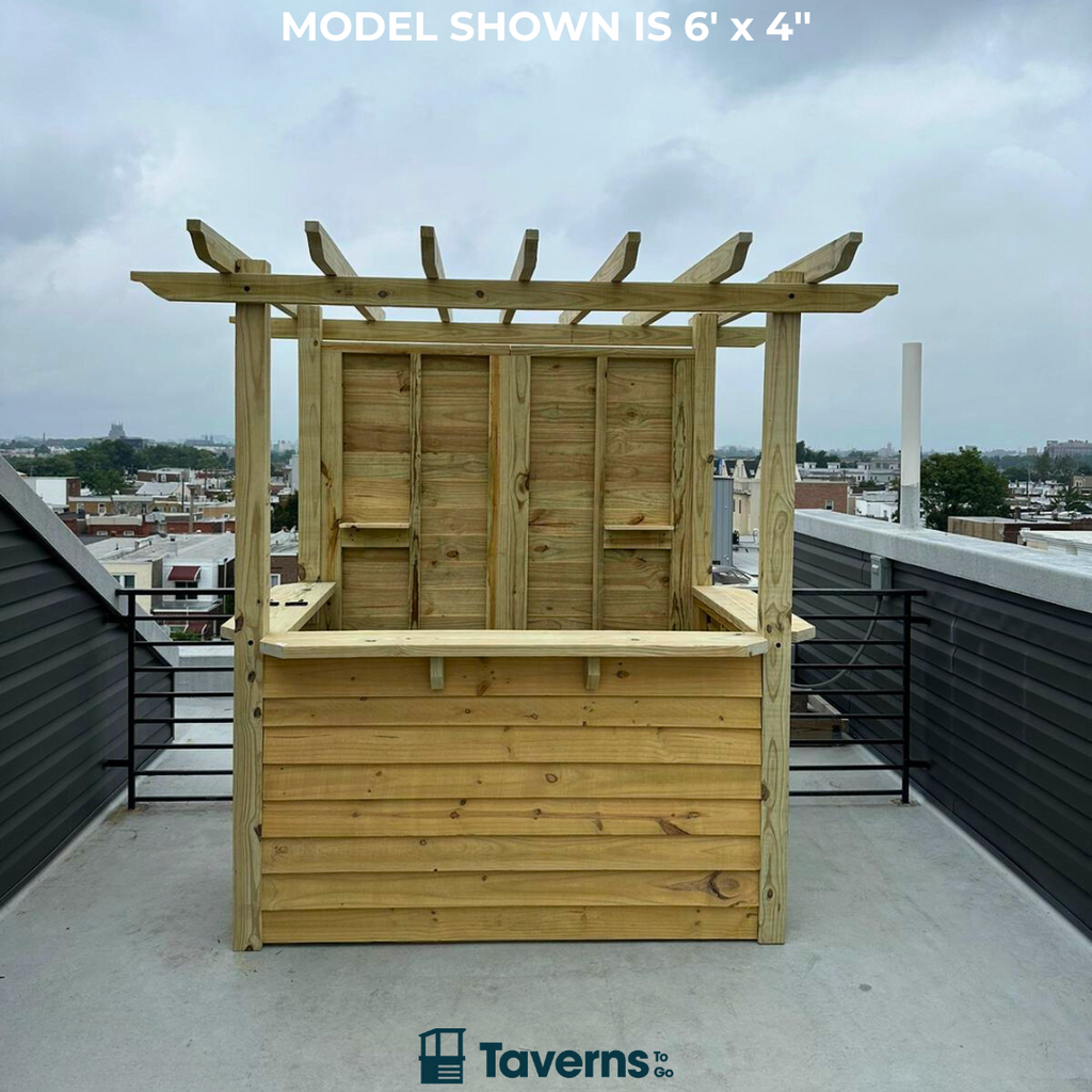 The Open Bar comes in (3) different sizes; the same as our (3) regular models but with a pergola roof in lieu of the standard 'tin' roof. The pergola will provide shade on those hot summer days... and also provides the perfect structure for intertwining stringer lights, ivy or any other merchandise you choose for decorating your Tavern-To-Go.