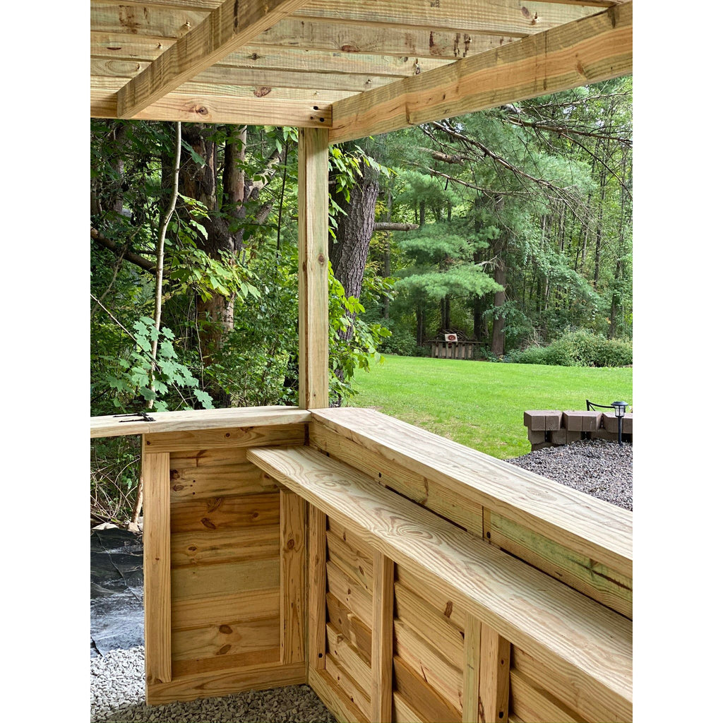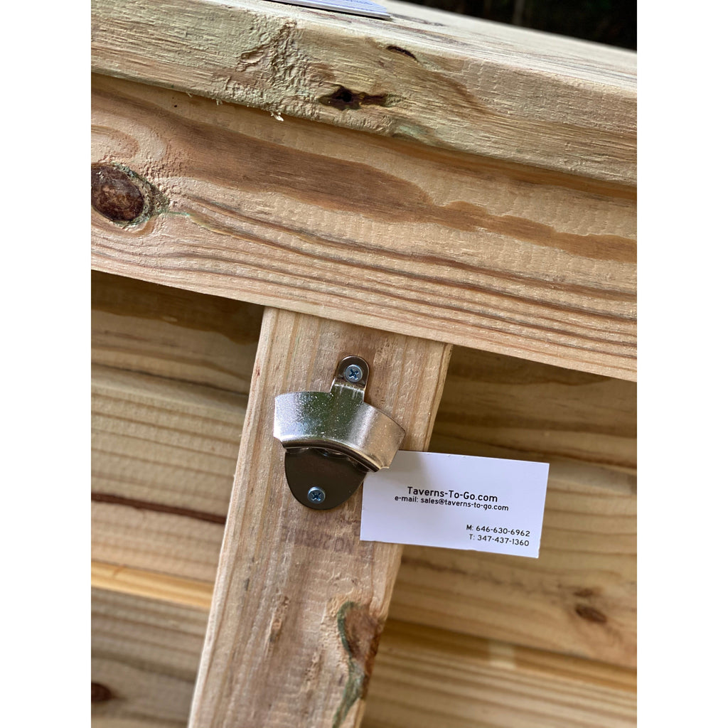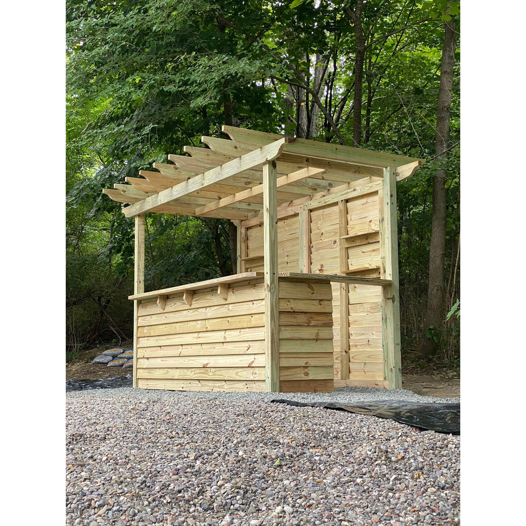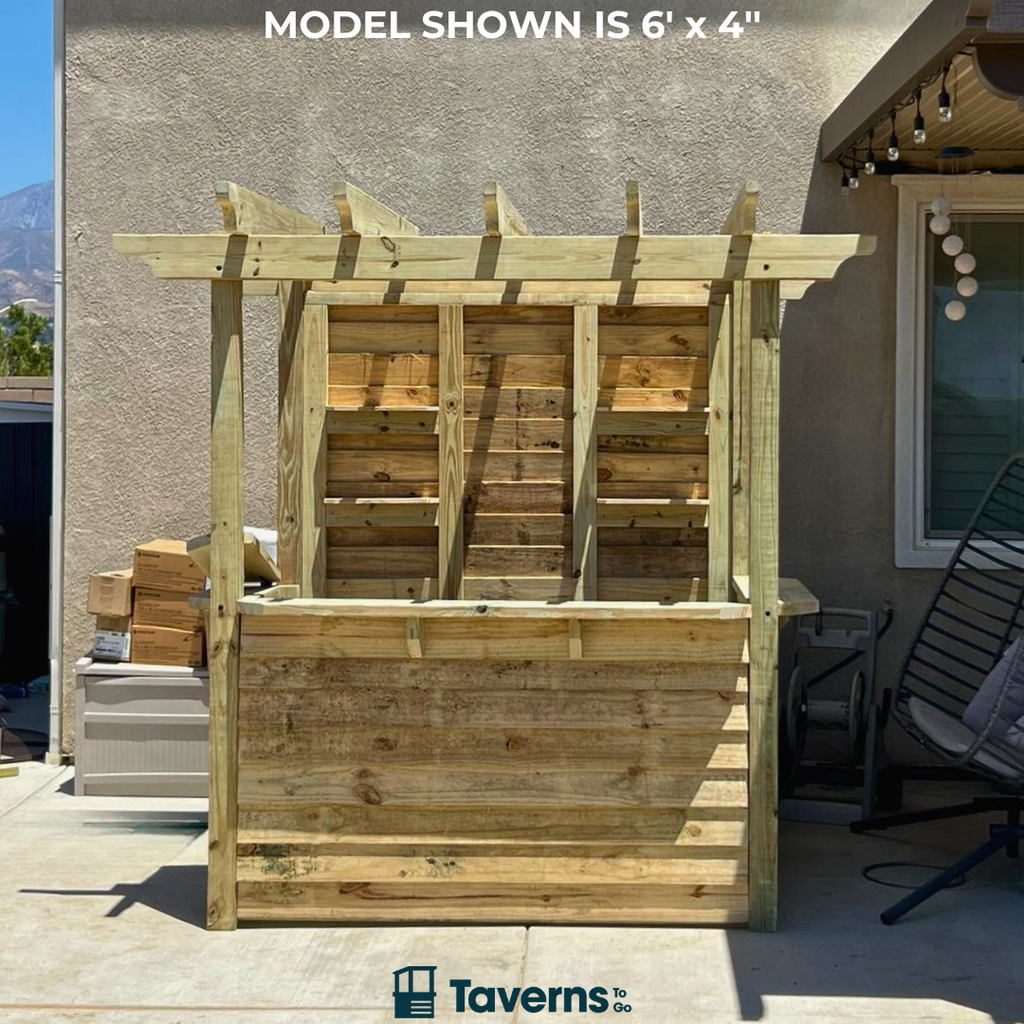 The Open Bar comes in (3) different sizes; the same as our (3) regular models but with a pergola roof in lieu of the standard 'tin' roof. The pergola will provide shade on those hot summer days... and also provides the perfect structure for intertwining stringer lights, ivy or any other merchandise you choose for decorating your Tavern-To-Go.