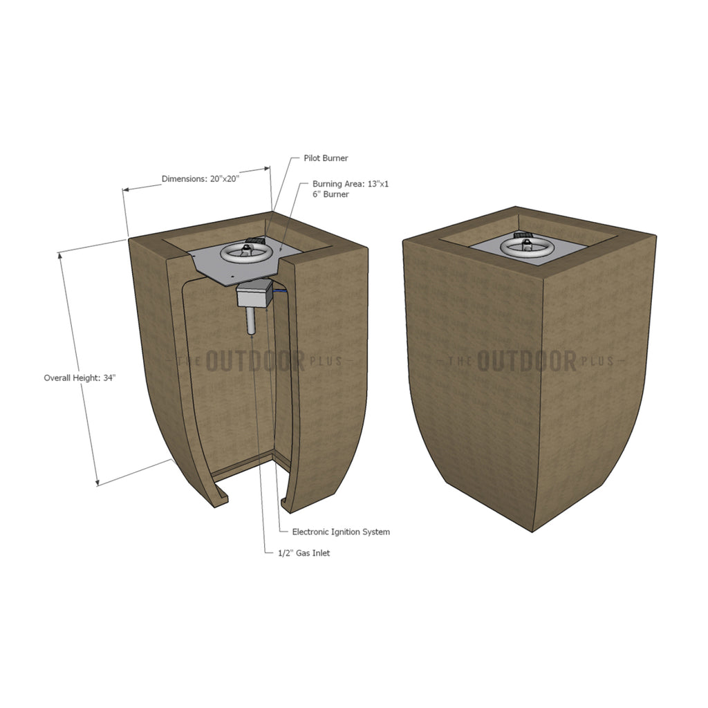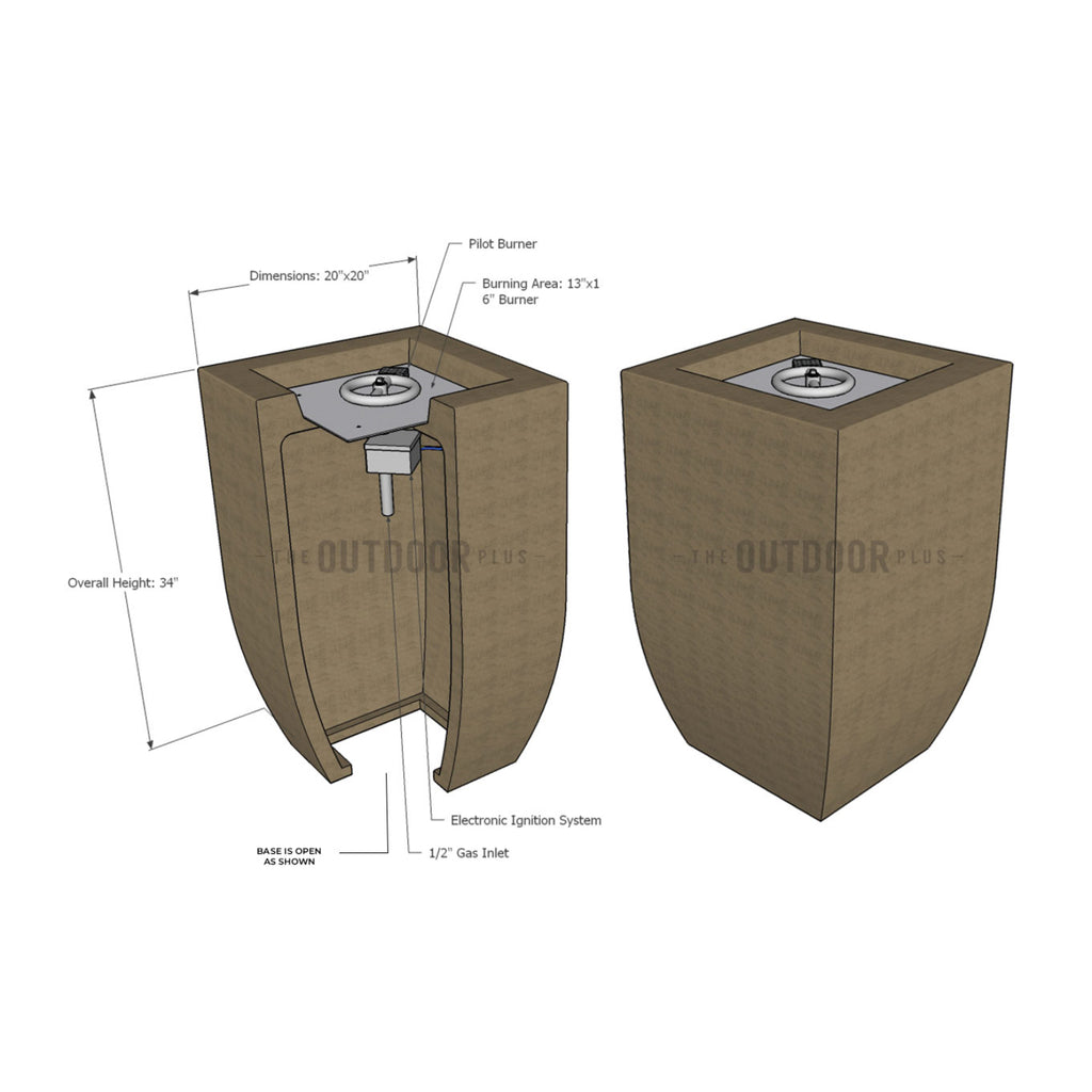 The Outdoor Plus Baston 20" Square GFRC Concrete Fire Pillar is a sleek and modern outdoor fire feature designed to elevate any luxury patio, backyard, or commercial outdoor space. Crafted from high-quality Glass Fiber Reinforced Concrete (GFRC), this durable fire pillar offers superior strength and weather resistance while maintaining a lightweight yet solid structure.